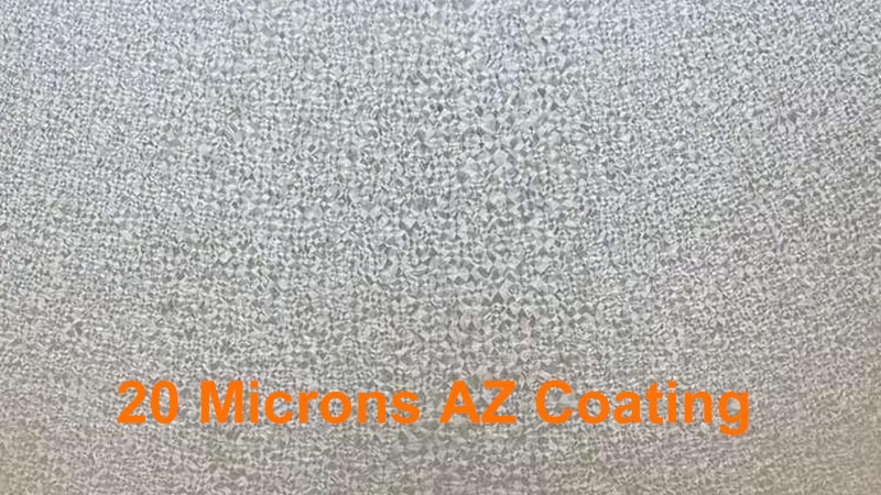 Aluminum zinc alloy coating (usually composed of 55% aluminum, 43.4% zinc, 1.6% silicon) combines the advantages of aluminum and zinc: