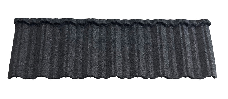 The stone coated roofing tile front is completely covered with colored stones