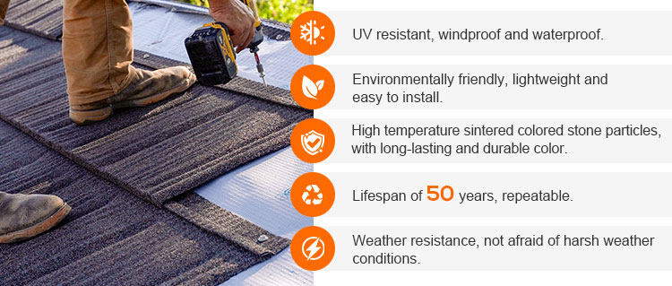 Environmental friendliness: The steel used for colored stone metal tiles can be recycled and reused